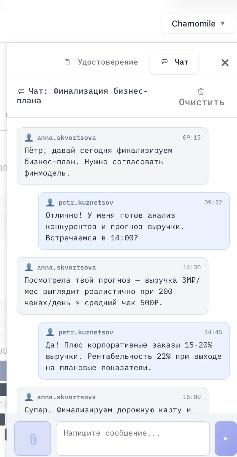 Контекстно-зависимый мессенджер для коллаборации по задачам с персистентной историей сообщений, поддержкой вложений (изображения, PDF) и интеграцией ИИ-ассистента для помощи в планировании